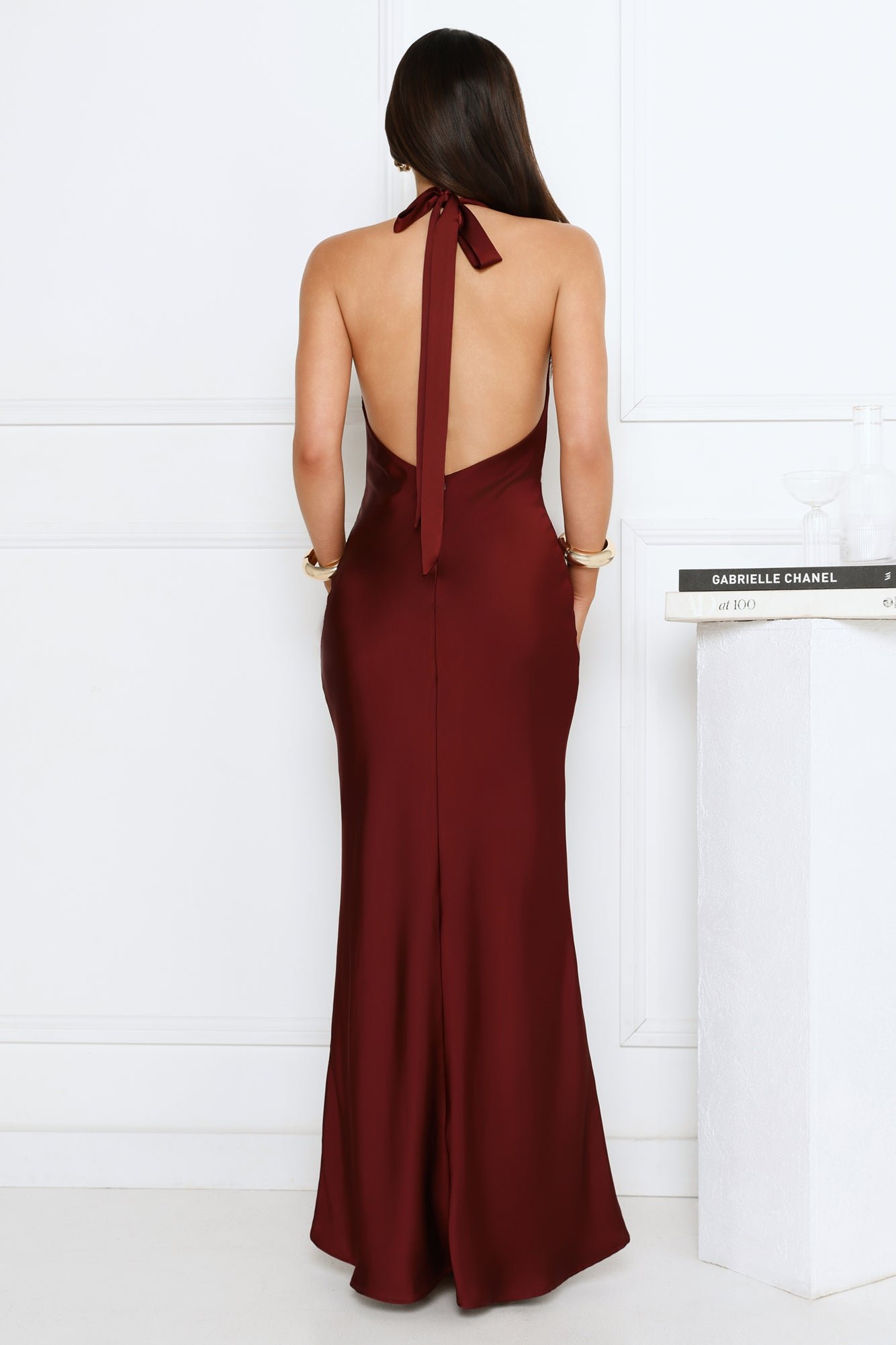 Step into elegance with the Cherry Whirl Satin Halter Maxi Dress. Designed with stretch lining, a satin silhouette, a flattering cowl neckline, and a halter, this flowy maxi drapes beautifully for a sophisticated, show-stopping silhouette—perfect for evening events or special occasions.