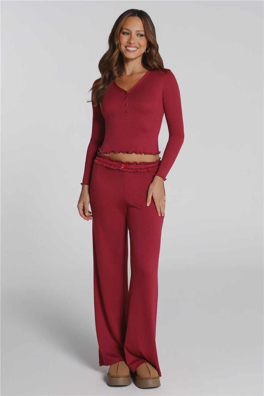 Bring effortless festive comfort to your holiday nights with the Fireside Moments Relaxed Pyjama Pants. Designed with a soft pointelle fabric, a comfy elastic waistband, and the sweetest bow detail. Pair with the matching top to complete your cutest seasonal set.