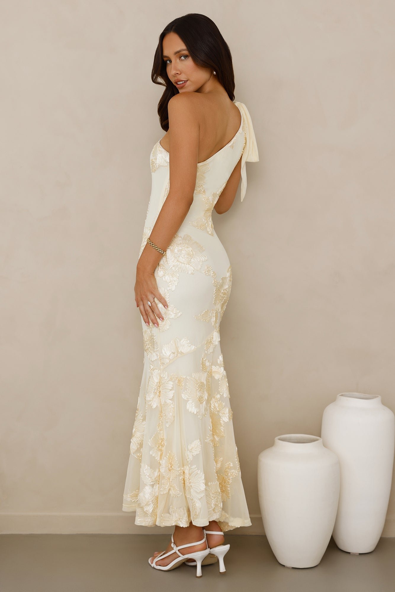 Glossy Girl One Shoulder Mesh Maxi Dress Yellow