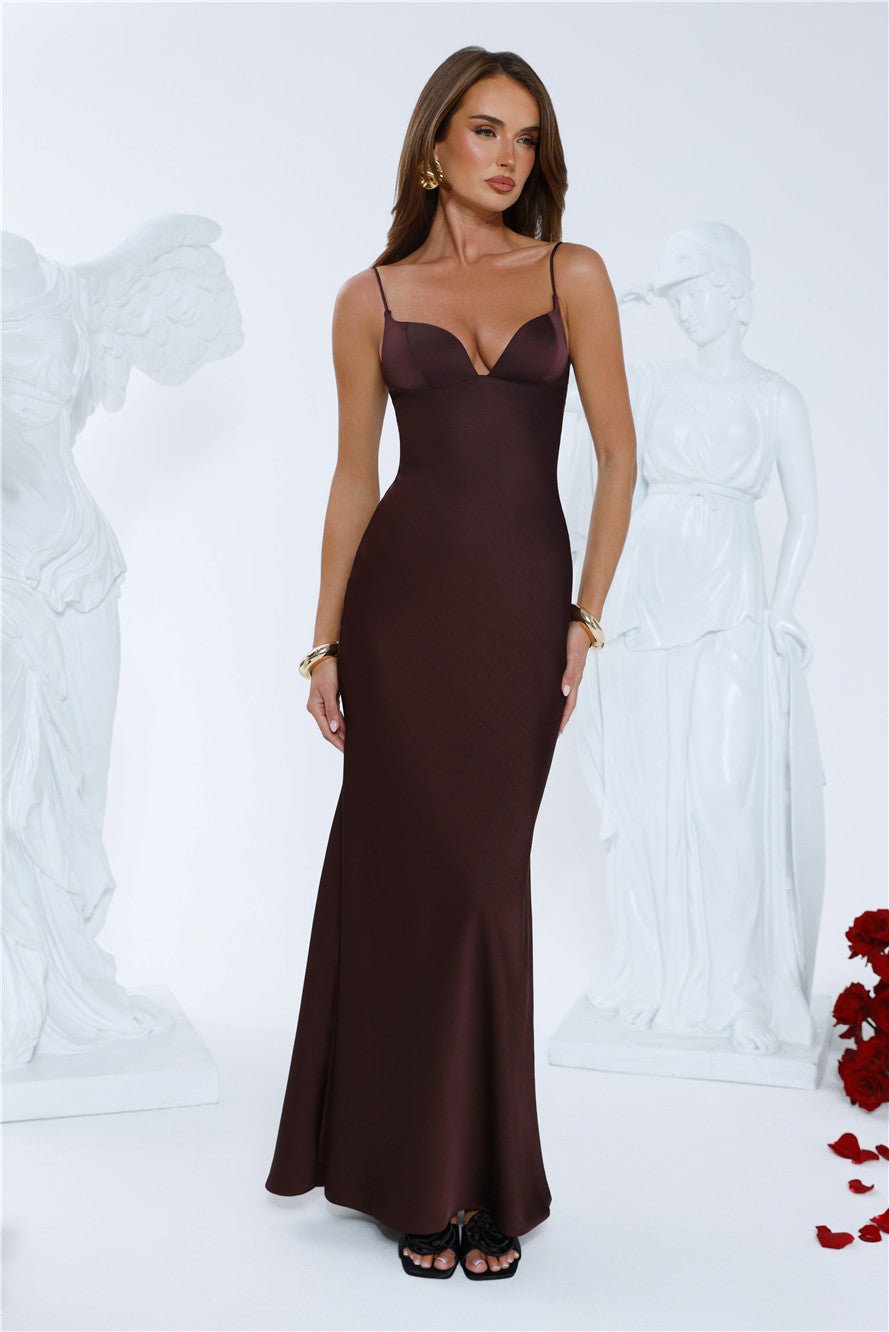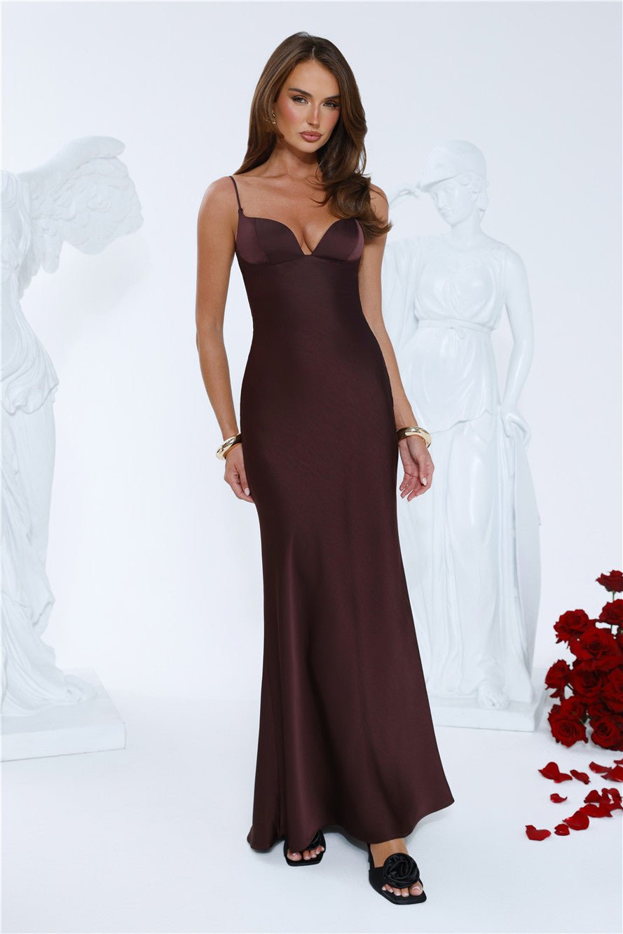 Steal the spotlight in the Glow Up Certified Maxi Dress. Made in smooth satin with a flowy silhouette, this maxi is perfect for weddings, date nights, or special events. Pair with strappy heels and jewellery to complete the look.