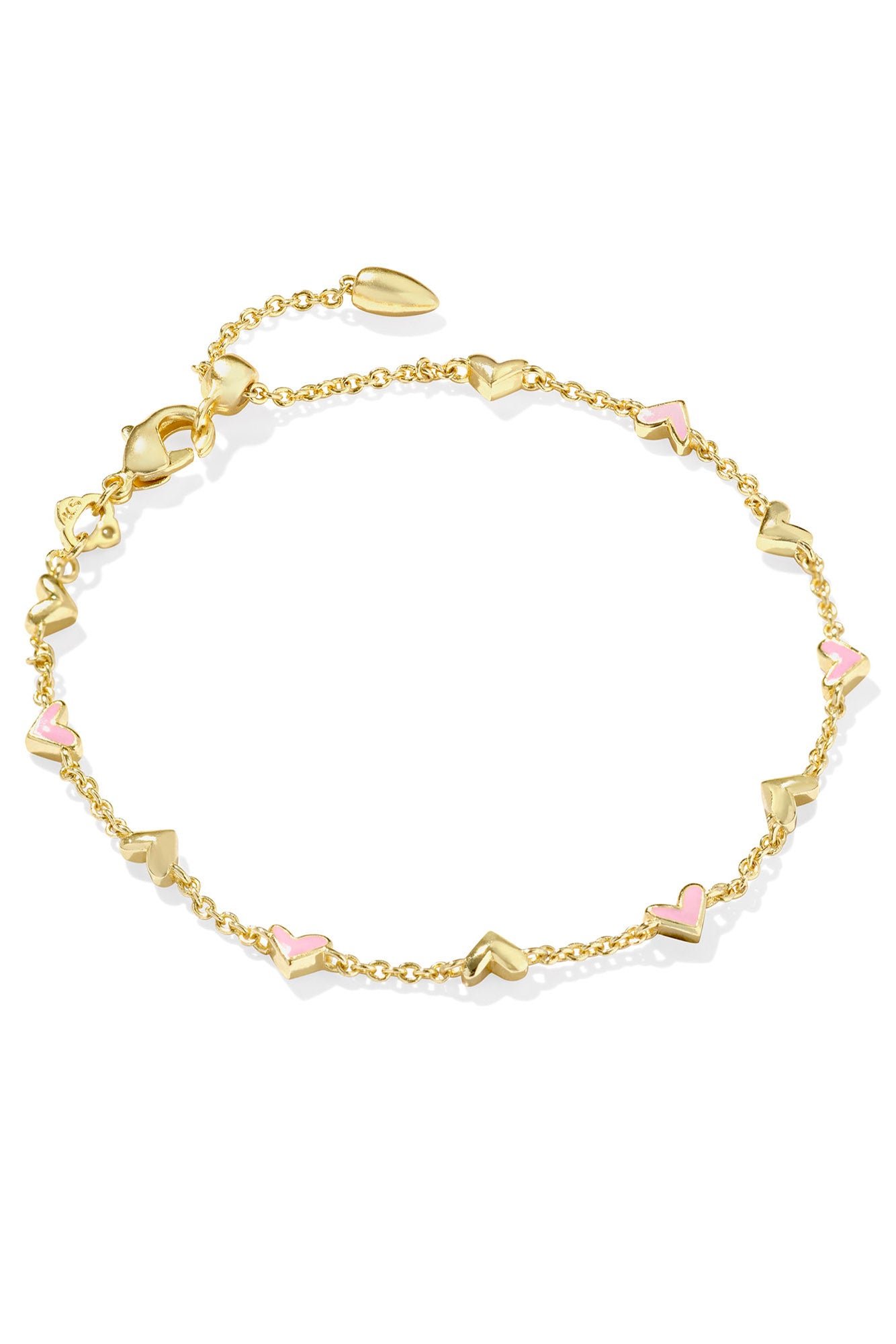 Haven Gold Delicate Chain Bracelet Pink Enamel