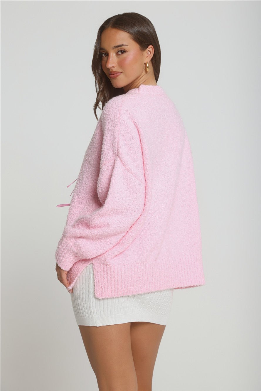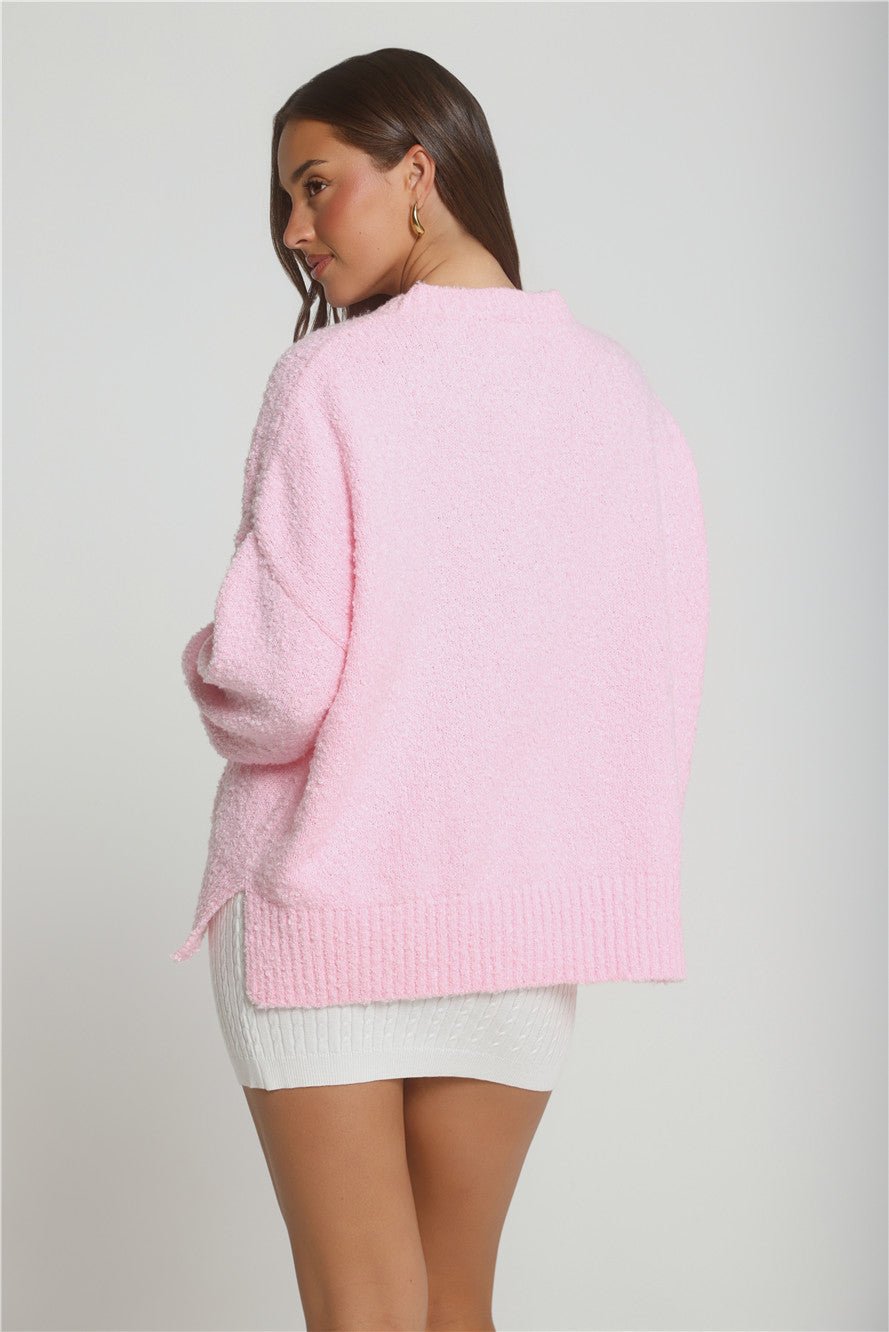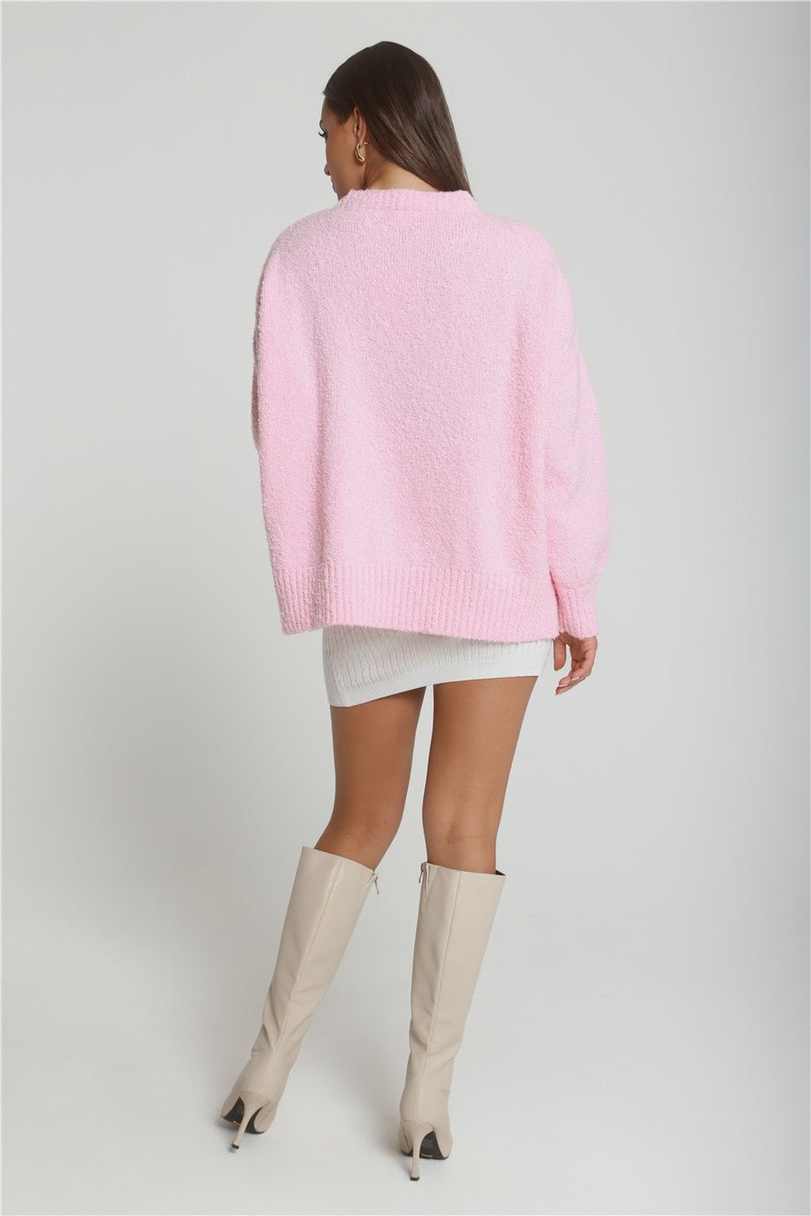 Cozy up in the Holiday Whisper Knit Sweater. Made from soft, stretchy knit with an oversized fit, long sleeves, and a classic crew neck, this slip-on sweater features a festive print that brings playful holiday vibes to any outfit. Style it with high-waisted jeans and ankle boots.