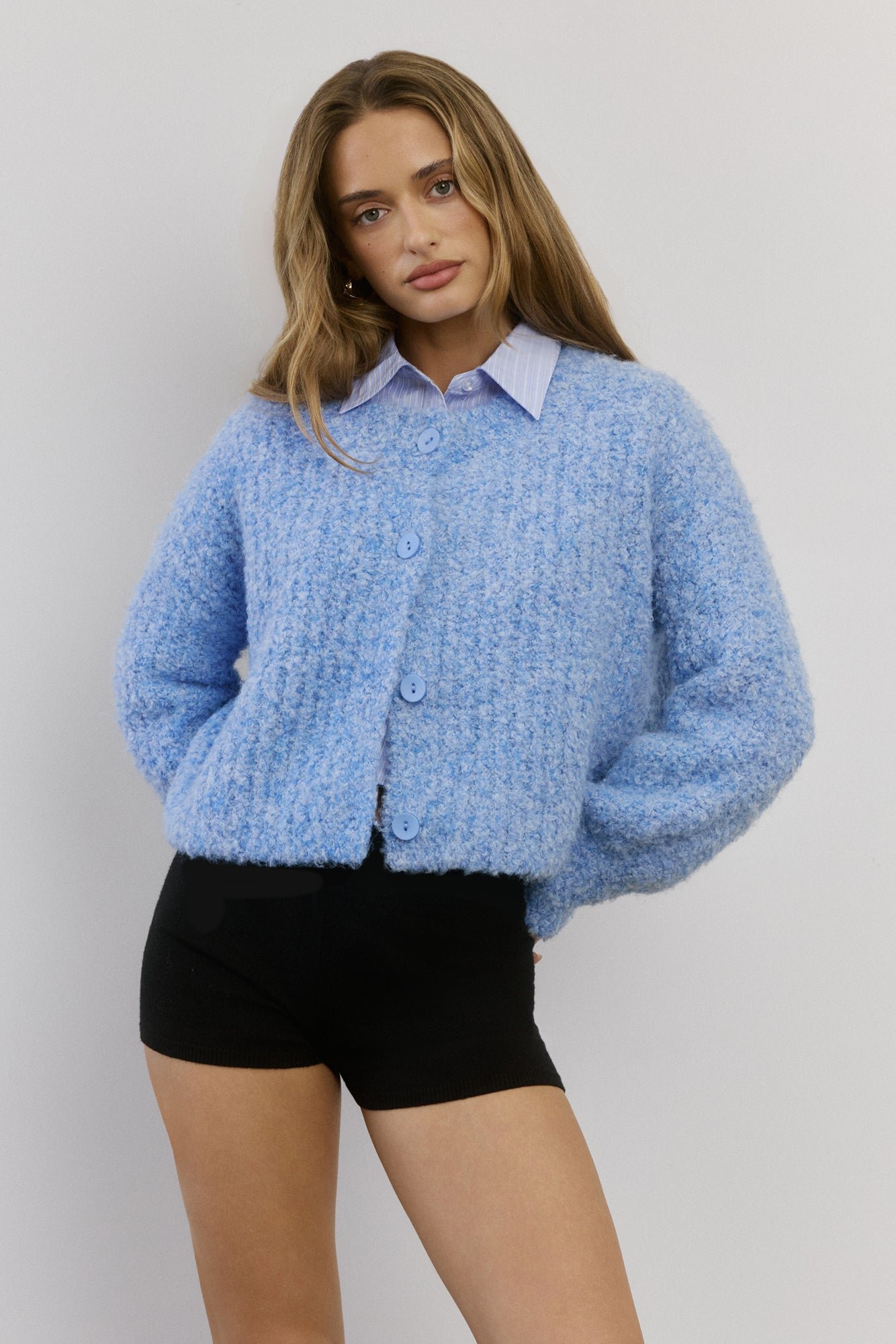 The Ice Queen Knit Cardigan is a must-have this season. With its oversized fit, long sleeves, and stretch knit fabric, it offers both warmth and effortless style. The button front adds a touch of elegance, making it perfect for layering over any outfit. Pair it with your favourite jeans or leggings for a chic, cosy look.