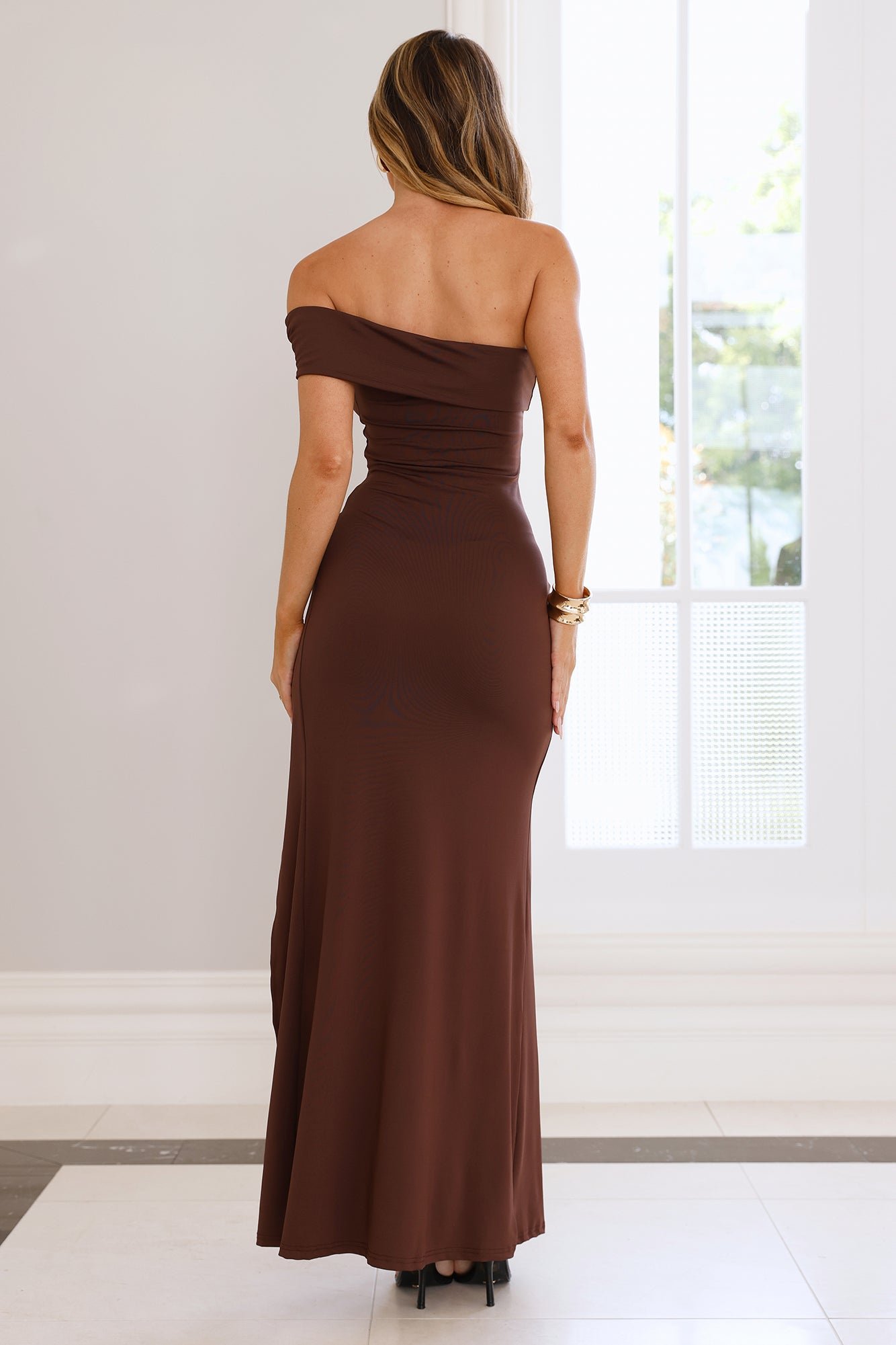Stand out in a gorgeous style, lovely. The Lavish Luxe Off Shoulder Maxi Dress features a smooth, buttery fabrication, a twist detail, and a split to the skirt. Style with heels and curls for an impressive ‘fit.