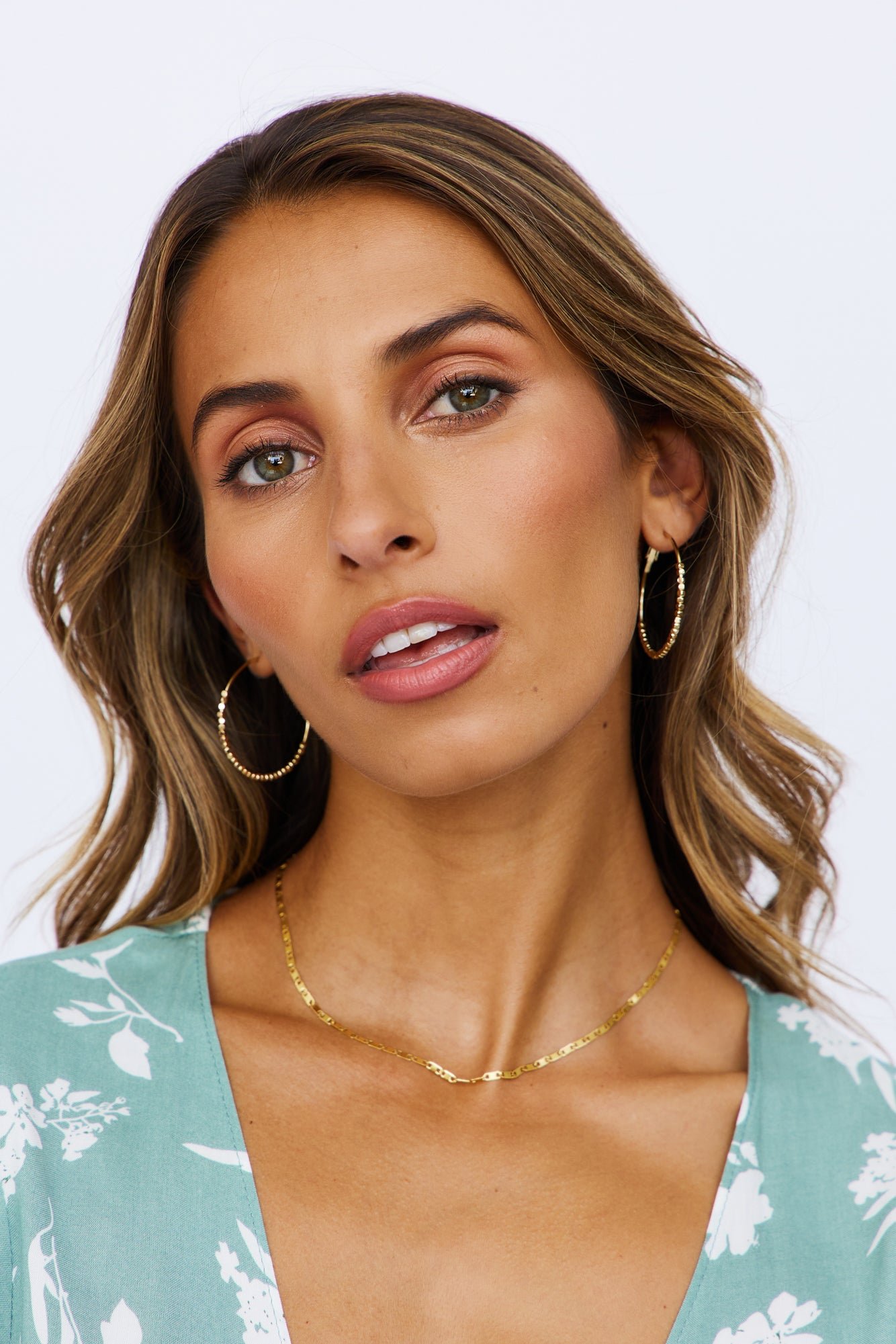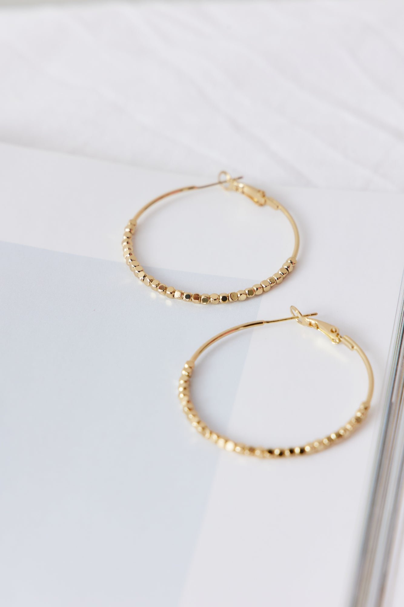 - Gold hoop earrings.