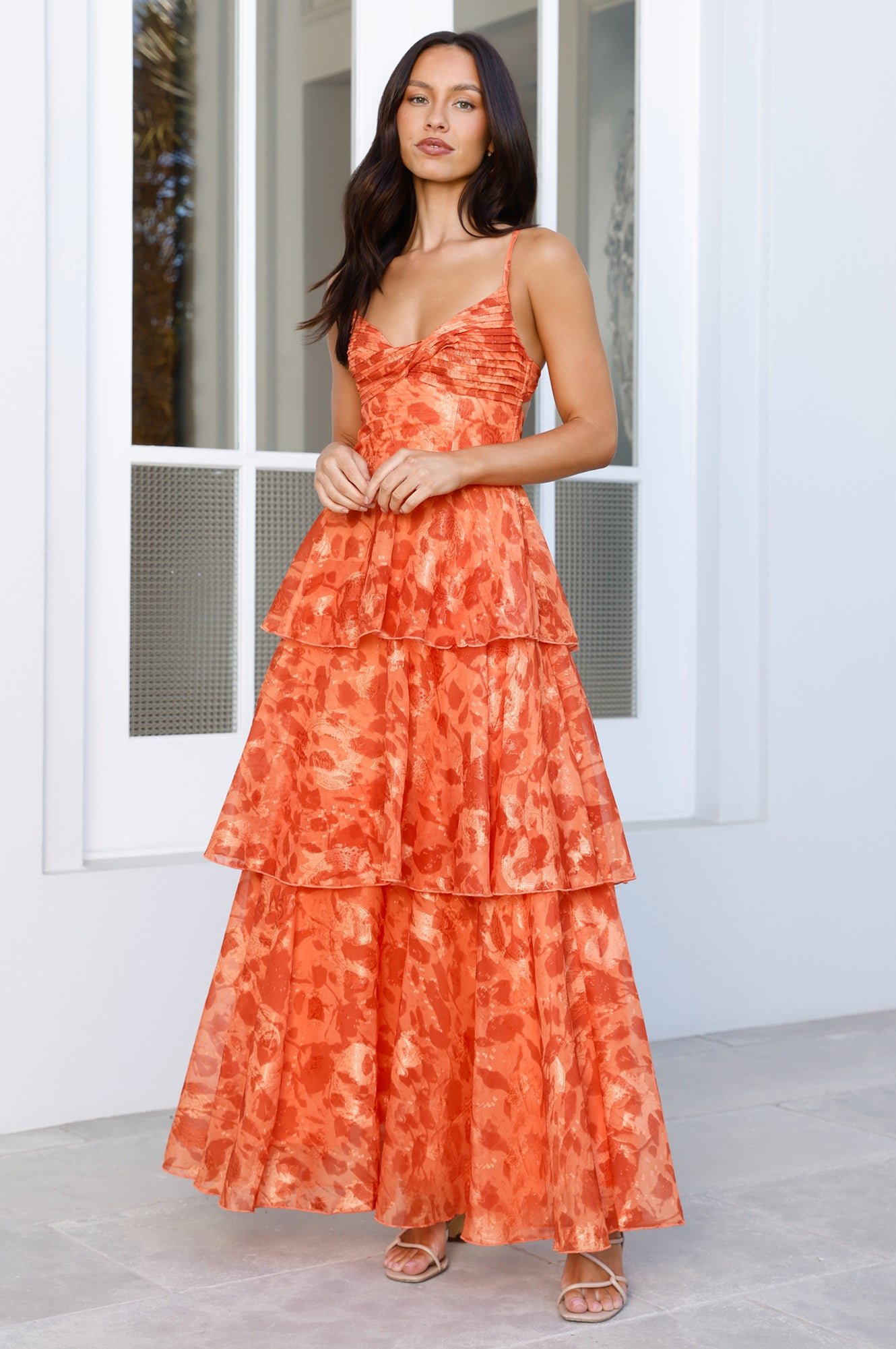 Show off in the Painted Promises Maxi Dress. With its twist neckline, flowing tiered skirt, and effortlessly flattering silhouette, this piece is made for movement and mood. Style with sleek flats and oversized shades.