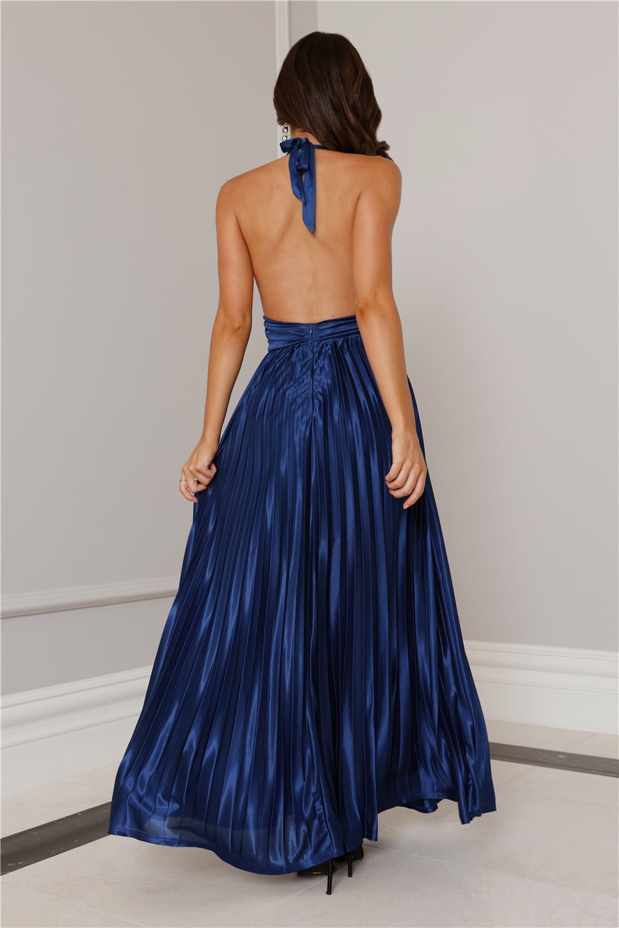 Enter in a dreamy style, lovely! The Shimmering Sea Pleated Halter Maxi Dress features a gorgeous silky silhouette with pleats and a halter tie. Style with heels for an extravagant ‘fit.Â
