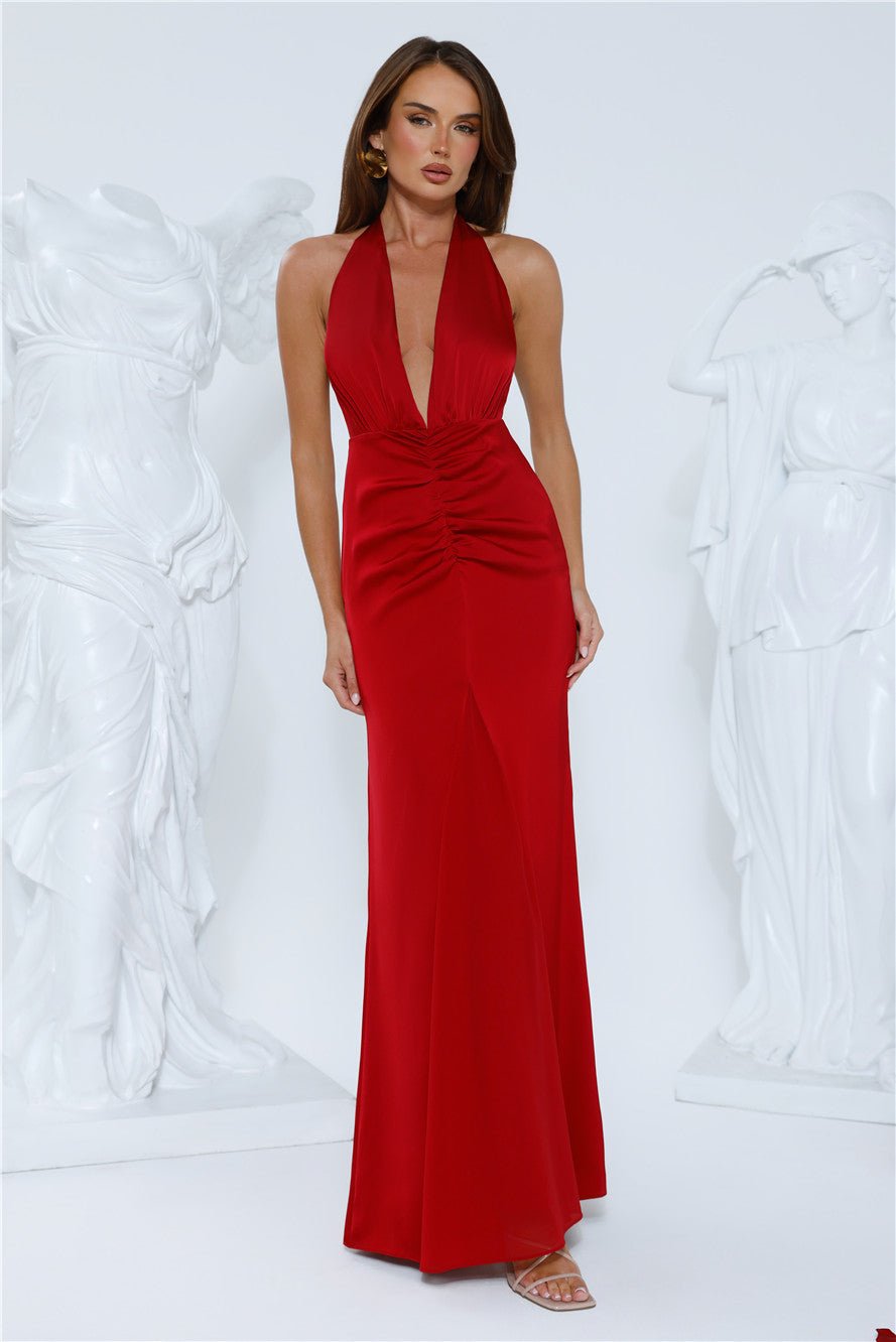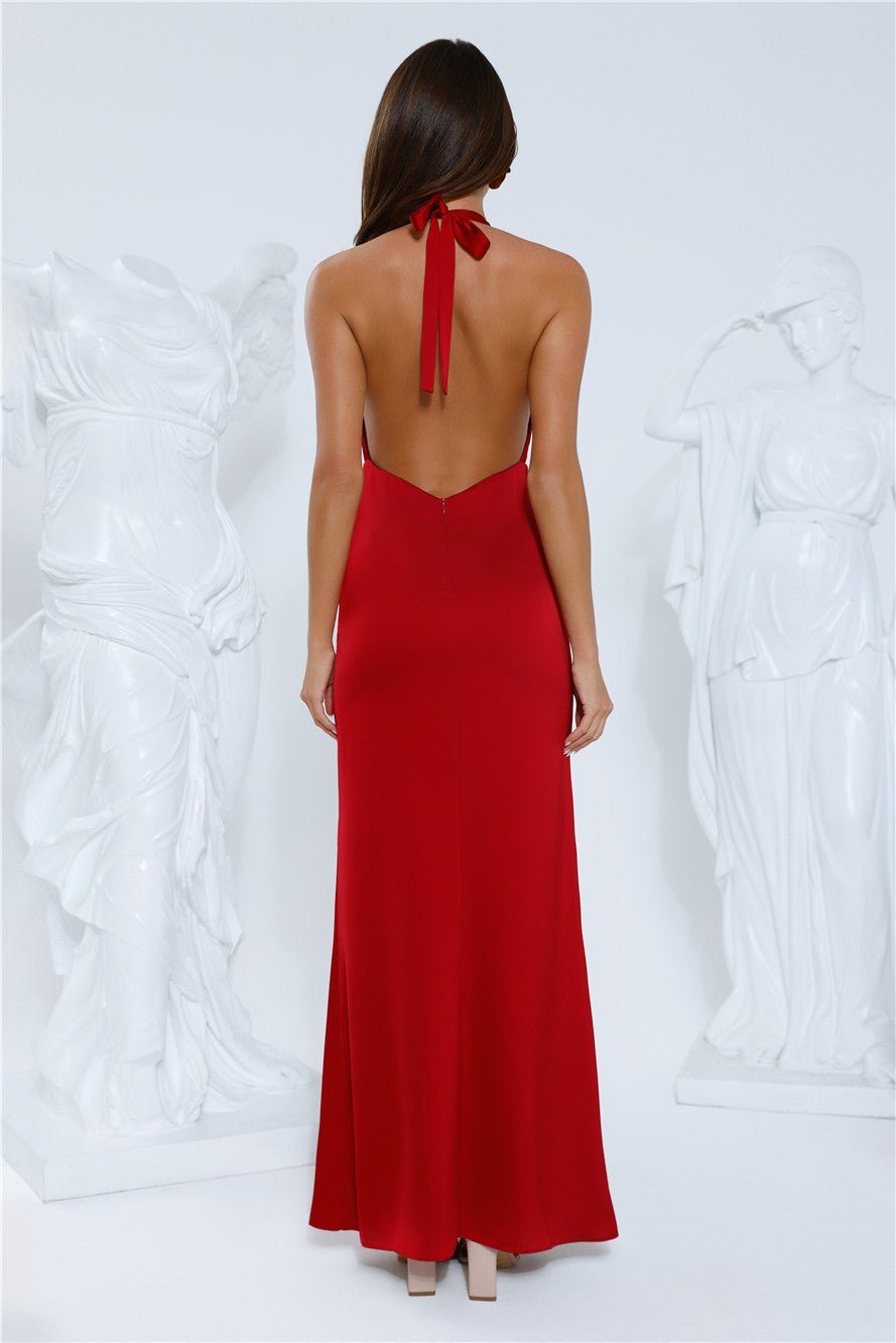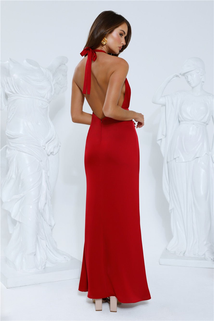 Be the first to review “Silhouette Theory Halter Satin Maxi Dress Red”