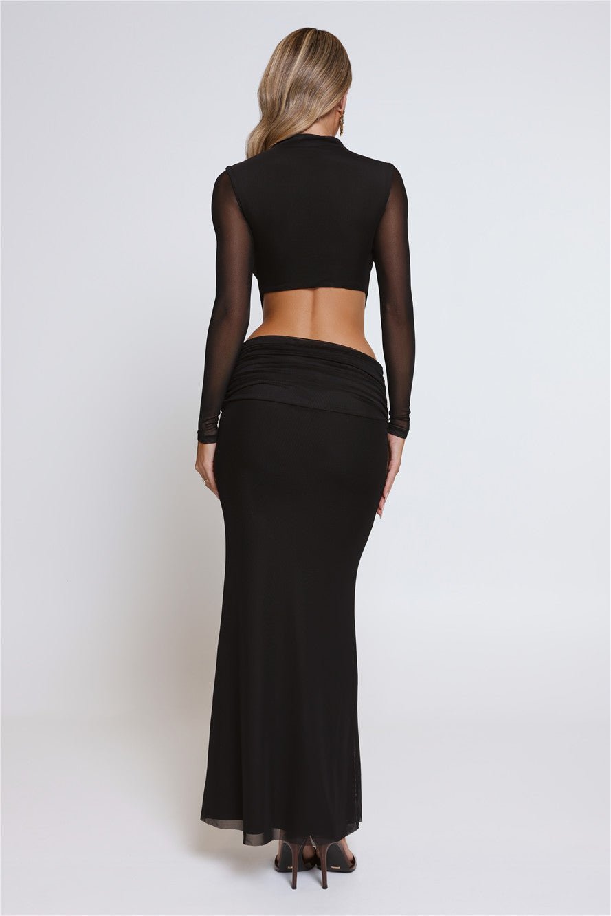 The Star Crossed Moment Long Sleeve Maxi Dress is designed from stretch mesh and features a high neck with cutouts to the waist and an open back. This slip-on maxi dress combines elegance to create a standout silhouette. Pair with sleek heels and minimal gold jewellery to let the dress stand out.