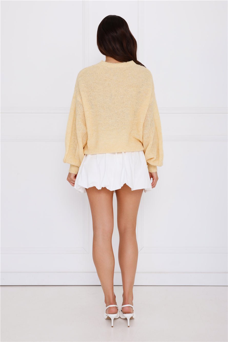 We’re in love with this cosy knit. The Sweater Weather Knit features a soft and stretchy knit design and an oversized fit. Style with a mini skirt for a fun look. Â