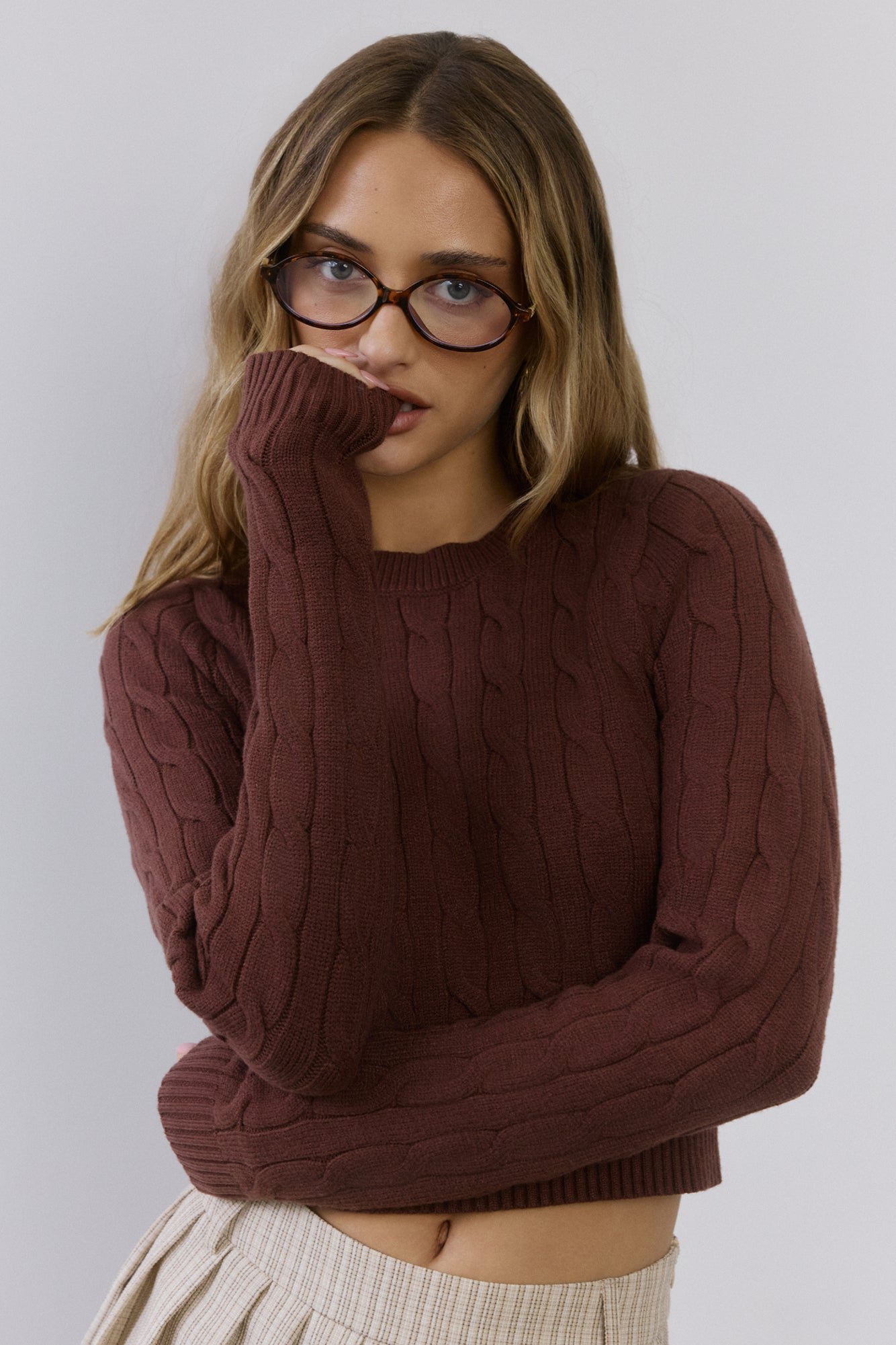 The cosiest ‘it girl’ moment you’ve been waiting for. The Exclusive Cable Knit Sweater wraps you up in soft, stretchy comfort with a luxe cable knit design. Perfect for coffee dates, campus strolls, or spontaneous weekend getaways — this sweater is basically your new fave.