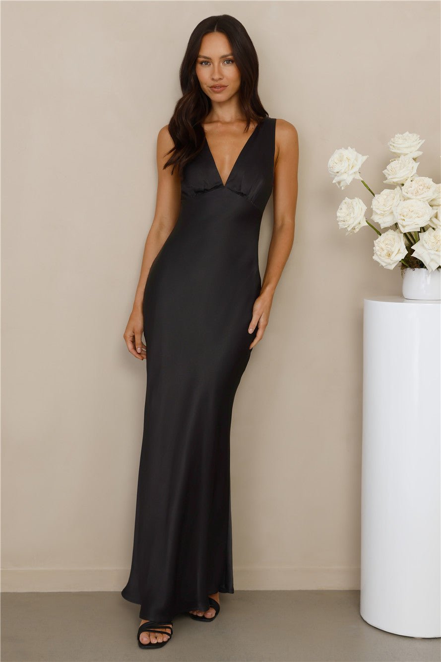 Romantic, effortless, and made to shine. The Isabeau Satin Maxi Dress is crafted in a silky satin that glows with elegance. Featuring a soft V-neckline, an elastic back for comfort, and a straight, flowy silhouette, she’s designed to flatter from every angle. She’s the perfect style for bridal parties, sunset events, and magical evenings.